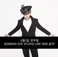 그룹 빅뱅이 만우절 이벤트로 신곡 ‘스투피드 라이어(Stupid liar)’를 선공개 했다.1일 YG 공식 블로그를 통해 공개된 ‘스투피드 라이어’는 지난 2월 말 빅뱅이 발표한 미니 4집 수록곡 ‘투나이트’와 마지막까지 타이틀곡 경쟁을 벌였던 곡으로 빅뱅이 오는 8일