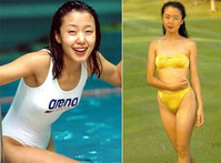 배우 전도연의 과거 수영복 사진이 화제다.최근 각종 인터넷 포털사이트 게시판에 전도연의 과거 수영복를 입고 찍은 여러 장의 사진이 게재됐다.사진 속 전도연은 노란색 비키니를 입고 군살 없는 몸매와 탄탄한 허벅지를 자랑하고 있다. 과거 사진임에도 불구하고 일자 쇄골과 환