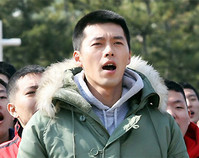 인기배우 현빈이 7일 포항시 남구 오천읍 해병대 교육훈련단에 입소했다. 현빈은 이날 오전 11시께 해병대 교육훈련단에 도착해 군과 소속사 관계자들과 만남을 가진 뒤 오후 1시35분께 취재진과 팬 등 2천여멍이 몰린 교육훈련단내 김성은관 앞에 모습을 드러냈다.현빈은 이