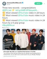 방탄소년단(BTS)이 새 앨범 '맵 오브 더 소울 : 페르소나(MAP OF THE SOUL : PERSONA)'로 기네스 3개 부문 신기록을 기록했다. 15일(현지시각) 영국의 기네스 월드 레코드(Guinness World Records)는 공식 홈페이지를 통