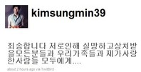 지난 3일 마약(필로폰) 투약 혐의로 서울 역삼동 자택에서 전격 체포된 탤런트 김성민이 4일 오후 자신의 트위터에 사괴의 글을 올려 주목된다.현재 검찰에 구속된 상태로 알려진 김성민은 자신이 체포되기 전, 마약 투약 사실을 인정하고 이같은 사과의 심경을 피력한 것으로