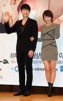 탤런트 현빈, 하지원에 대한 기대감으로 하반기 최고 기대작으로 손꼽히는 SBS 새 주말드라마 ‘시크릿가든’ 제작발표회가 10일 오후 서울 목동 SBS사옥에서 열렸다.이날 제작발표회에 참석한 현빈 하지원이 취재진을 향해 포즈를 취하고 있다.