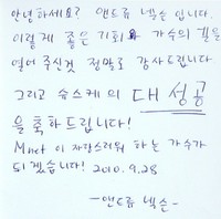 앤드류 넬슨, '슈퍼스타K2' 탈락 후 '자필 감사편지' 감동