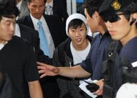 한국 비하글 논란으로 미국으로 떠났던 2PM 출신의 재범이 18일 오후 한미합작영화 '하이프 네이션' 촬영을 위해 인천국제공항으로 입국하고 있다. (연합뉴스) 18일 오후 5시25분 그룹 2PM 출신의 재범(23.영문명 제이)이 타고온 시애틀발 OZ(아시아나항공)