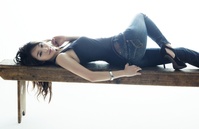 신민아의 섹시한 S 라인을 더욱 돋보이게 만드는 캘빈클라인 진의 프리미엄 데님 바디진과 블랙 슬리브리스의 섹시 베이직 스타일링.화이트 블리치가 가미된 캘빈클라인 진의 신상 데님 Body white wash(바디 화이트 워시)와 컨트라스트를 이루는 블랙 로고 티셔츠를 매