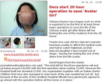 '섬유 형성 이상장애(Fibrous Dysplasia)'로 눈 사이에 거대 종양이 생긴 일명 '아바타걸(Avatar Girl)'이 병원 측의 도움으로 종양제거 수술을 받은 것으로 알려졌다.지난달 오스트리안타임즈(www.austriantimes.at)의 보도로 세간에 알