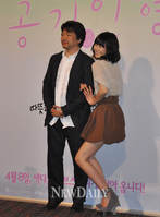 영화 '공기인형' 언론시사회에 참석한 고레에다 히로카즈 감독(좌)과 배두나(우) ⓒ 뉴데일리 25일 서울 성동구왕십리 CGV에서 열린 영화 '공기인형' 언론시사회에 참석한 배우 배두나가 고레에다 히로카즈 감독과의 키 차이를 의식하고 이를 배려하는 듯한 애교있는 모습을