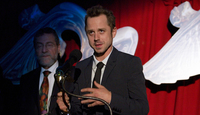 제1회 국제3D협회시상식에서 영화 '아바타'의 배우 지오바니 리비시가 제임스 카메론 감독을 대신해 상을 수상하고 있다 ⓒ 뉴데일리 제임스 캐머런 감독의 2009년 할리우드 최고의 화제작 '아바타'가 전세계 3D관련 상을 휩쓸고 있다.지난 23일(현지시간) 미국 LA
