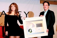 기념앨범을 전달 받고 있는 '머라이어 캐리' ⓒ 뉴데일리 기자회견에 앞서, 한국팬들에게 인사말을 하고 있는 '머라이어 캐리' ⓒ 뉴데일리