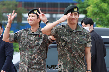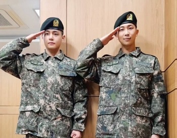 7인조 그룹 방탄소년단(BTS)의 RM(김남준)과 뷔(김태형)가 10일 오전 전역 신고를 마치고 가족의 품으로 돌아갔다.지난해 12월 나란히 육군 현역으로 입대해 각각 육군 15사단 군악대와 2군단 군사경찰 특수임무대에서 복무한 RM과 뷔는 이날 오전 만기 제대했다.두