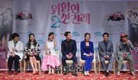 영화 [위험한 상견례2(감독 김진영)] 제작보고회가 1일 오전 서울 롯데시네마 건대입구점에서 열렸다.이날 제작보고회에는 개그맨 윤형빈, 정경미 부부의 사회로 출연배우 홍종현, 진세연, 신정근, 김도연, 박은혜 등이 참석했다.[위험한 상견례2]는 지난 2011년 위험한