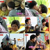 추사랑과 삼둥이 송만세가 뽀뽀했다. 지난 21일 방송된 KBS 2TV '해피선데이-슈퍼맨이 돌아왔다'(이하 '슈퍼맨') 57회 '러브 액츄얼리'에서는 성탄절을 앞두고 추성훈의 딸 추사랑과 송일국 삼둥이 대한 민국 만세의 특별한 만남이 그려졌다.이날 송일국은 실감나는 구