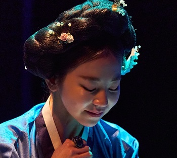배우 안소희가 흡인력 있는 연기로 연극 무대를 장악하고 있다. 연극 '그때도 오늘2: 꽃신'은 여성 2인극 형식으로, 1590년대 진주의 산골 집을 시작으로 1950년대 공주의 전통가옥, 1970년대 서울의 잡화점, 2020년대의 병원까지 서로 다른 시대와 공