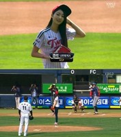 '준PO 4차전' 경리 시구 연습, 밀착 스키니 몸매 '우월'