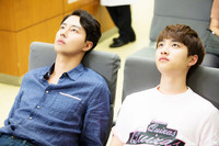 조인성과 그의 열혈팬 엑소 디오(본명 도경수)의 귀여운 모습이 포착됐다. SBS 수목드라마 '괜찮아, 사랑이야'(극본 노희경, 연출 김규태)의 제작진이 조인성과 도경수가 나란히 앉아 같은 표정, 같은 자세, 같은 곳을 바라보고 있는 스틸컷을 공개했다.'괜찮아 사랑이야'