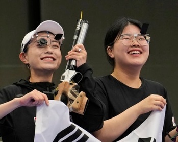 제주에서 올라와 이제 막 성인이 된 선수와 '엄마 총잡이'로 유명한 선수 두 명이 대형 사고를 쳤다. 28일(한국시각) 프랑스 샤토루 슈팅센터에서 열린 2024 파리올림픽 공기권총 10m 여자 결선에서 오예진(19·IBK기업은행)과 김예지(32·임실군청)가 나란히 금·