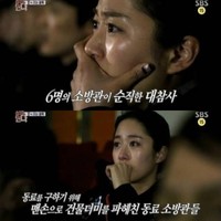 '심장이 뛴다'의 '전혜빈'이 뜨거운 눈물을 흘렸다. 지난 11일 방송된 SBS '심장이 뛴다'에서 전혜빈은 예비 소방대원 교육에 참석해 13년 전 홍제동 다세대 주택에서 발생한 화재 영상을 시청하면서 눈물을 보였다. 이 화재는 소방대원 7명이 목숨을 잃은 화재로, 건