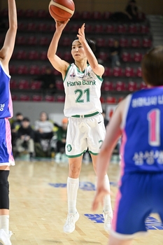 여자농구 부천 하나은행이 아시아 쿼터 이이지마 사키의 활약을 앞세워 용인 삼성생명을 12점 차로 꺾었다.하나은행은 24일 경기 용인체육관에서 열린 BNK금융 2025-2026 여자프로농구 정규리그 원정 경기에서 삼성생명에 76-64 승리를 거뒀다. 이상범 감독