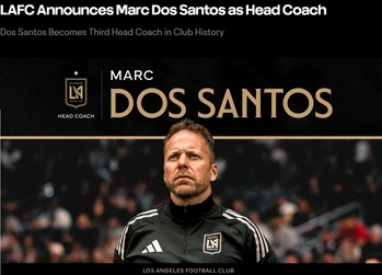 손흥민이 활약하는 미국 메이저리그사커(MLS) LA FC가 수석코치로 활약한 마크 도스 산토스를 새로운 사령탑으로 선임했다.LA는 6일(한국시간) 공식 홈페이지를 통해 "마크 도스 산토스 감독을 제3대 사령탑으로 영입했다. 도스 산토스 감독은 지난 4시즌 동안 수석코치
