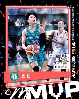 여자 프로농구 부천 하나은행의 진안이 올 시즌 3라운드 최고의 활약을 펼친 선수로 인정받았다.한국여자농구연맹(WKBL)은 BNK금융 2025-2026 여자프로농구 flex 정규리그 3라운드 최우수선수(MVP)로 진안이 선정됐다고 19일 발표했다. 지안은 기자단 투표 결