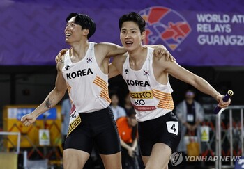 한국 육상 남자 400m 계주 대표팀이 11개월 만에 '한국 신기록'을 세웠다. 서민준(서천군청), 나마디 조엘진(예천군청), 이재성, 고승환(이상 광주광역시청)으로 구성된 한국은 10일 중국 광저우에서 열린 2025 세계육상릴레이선수권 남자 400m 계주 예