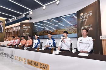 정상을 향한 마지막 관문, '2025-2026 KB국민은행 바둑리그' 포스트시즌 미디어데이가 23일 한국기원 신관 1층 라운지에서 개최됐다.이날 행사에는 정규리그 '1위'를 차지한 울산 고려아연의 박승화 감독과 주장 안성준 9단을 비롯해 원익의 이희성 감독과 4지명 김