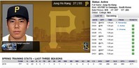 피츠버그 파이어리츠 소속 강정호가 시범경기 이틀 연속 불참했다. 22일 보스턴전에 이어 23일 휴스턴전마저 출전하지 못한 것이다. 피츠버그 입단 이후 이틀 연속 결장은 이번이 처음이다. 피츠버그 주전 내야진과 힘든 경쟁을 벌이고 있는 강정호 입장에서 경기에 내리 나가지