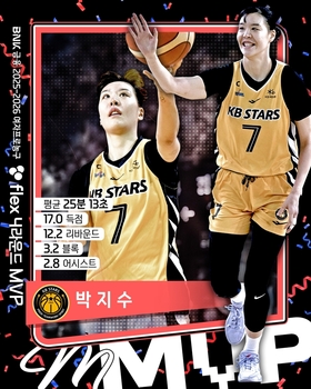 여자 프로농구 청주 KB의 '국보 센터' 박지수가 정규리그 4라운드 최고의 활약을 펼친 선수로 인정받았다.한국여자농구연맹(WKBL)은 BNK금융 2025-2026 여자프로농구 flex 정규리그 4라운드 최우수선수(MVP) 기자단 투표에서 박지수가 총 92표 중 42표를