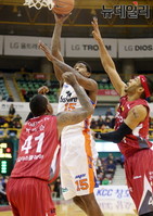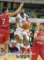 【뉴데일리 스포츠】창원 LG 세이커스가 가공할 득점력을 선보이면서도 프로농구 정규리그 8위에 머물러 있다. 창원의 평균 득점은 77.5점으로 10개 팀 중 2위에 올라있다. LG는 문태종(40)과 외국인 선수 데이본 제퍼슨(29)의 활약으로 득점에서는 선두권을 달리고