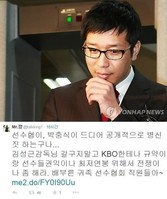 강병규가 박충식 한국프로야구선수협회(이하 선수협) 사무총장에 일침을 가했다. 강병규는 16일 자신의 트위터에 "프로야구 선수협회, 박충식이 드디어 공개적으로 XX짓 하는구나"라는 글과 함께 '선수협, 이번 사태, 김성근 감독 때문에 벌어졌다'는 제목의 기사를 링크했다.