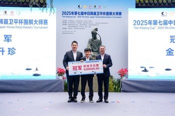 한·중·일 신예, 시니어 대표선수가 맞대결한 녜웨이핑배 결승에서 한국 김승진 7단이 최종 우승을 차지했다. 26일 중국 쓰촨성 청두시 두보초당에서 열린 제7회 녜웨이핑배 바둑 마스터스 최종 결승전에서 주니어조(20세 이하) 우승자 김승진