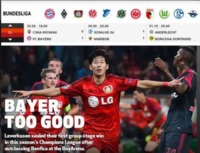 손흥민이 2일(한국시간) 벤피카와의 챔피언스리그 C조 2차전 홈경기에서 팀의 2번째 골인 결승골을 넣으며 팀의 3-1 승리를 이끌었다.'손세이셔널'이라는 별명에 걸맞는 맹활약을 펼친 이날 경기 후 독일 분데스리가는 공식 홈페이지 영문판에 손흥민의 사진을 메인에 내