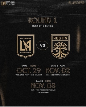 미국프로축구(MLS) 진출 첫 시즌에 우승을 노리는 손흥민(LA FC)의 플레이오프(PO) 경기 일정이 확정됐다.LA FC는 30일 12시30분(한국시각) 오스틴 FC를 상대로 MLS컵 PO 1라운드(3전 2선승) 첫 경기를 치른다.MLS 사무국은 20일 공식 홈페이지