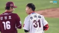 롯데 자이언츠 손아섭(26)과 넥센 히어로즈 강정호(27)가 경기 도중 실랑이를 벌이는 장면이 포착됐다. 지난 16일 부산 사직구장에서 열린 2014 한국야쿠르트 세븐 프로야구' 롯데-넥센전에서 손아섭과 강정호가 장난을 치다 충돌하는 해프닝이 발생했다이날 경기에서 손아