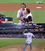 메이저리그 전 야구전수 랜디존슨이 퍼펙트게임 10주년을 맞이해 시구에 나섰다. 랜디 존슨은 19일(한국시간) 애리조나 피닉스의 체이스필드에서 열린 '2014 메이저리그' LA다저스와 애리조나 다이아몬드백스의 경기를 앞두고 시구 행사를 가졌다.이날 시구는 랜디존슨의 퍼펙