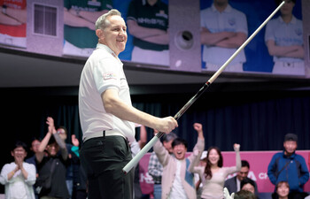 '4년 만에 테이블 위로 펄쩍 세리머니' … '당구 교황' 레펀스, 조재호 꺾고 우승+상금 1위