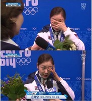 김연아가 시상직 직후 방상아 해설위원의 한마디에 참았던 눈물을 쏟았다.22일(한국시간) 김연아는 러시아 소치 메달플라자에서 열린 2014 소치 동계올림픽 메달 시상식에서 은메달을 목에 걸었다.김연아는 시상직 직후 SBS와 인터뷰에서 방상아 해설위원이 건넨 "고마워 알지