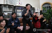 모태범 선수가 10일 저녁 2014 소치 동계올림픽 스피드스케이팅 남자 500m 1차전에 출전하자 경기도 포천시 소흘읍 자택에서 모 선수의 아버지 모영열(가운데) 씨와 가족들이 열띤 응원을 펼치고 있다.