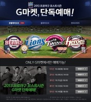 가 2013 프로야구 포스트시즌 첫 관문인 준플레이오프(5전 3승제) 입장권을 6일 오후 2시부터 판매한다.예매는 티켓(ticket.gmarket.co.kr)과 자동응답전화(1644-5703), 스마트폰 티켓 예매 애플리케이션(G마켓·티켓링크)에서 1인당 최대 4매까