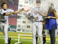 정인영 아나, 인터뷰 중 임찬규에게 물벼락 ‘벌써 두 번째’