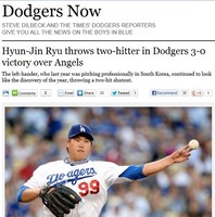 메이저리그 갓 데뷔한 새내기, 완봉 역투.."놀라워"지역 라이벌 LA에인절스 맞아 9이닝 2피안타 무실점박찬호? 이젠 류현진을 기억해야..국내에서 [괴물]이라 불리던 투수 류현진(26·LA 다저스)이 세계 최고의 무대에서도 대형 사고(?)를 쳤다.강타자들이 즐비한 LA