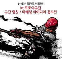 KT가 제10구단 창단 승인 이후 첫 공식 활동으로 프로야구단 이름과 야구단 마케팅 아이디어 공모전을 진행한다.KT는 25일 오는 4월 7일까지 프로야구단 명칭 공모를 진행한다고 밝혔다.온라인으로 진행되는 이번 공모는 전국민 누구나 참여할 수 있으며 공모 홈페이지(b