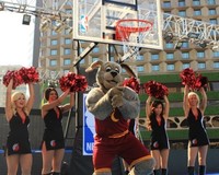 NBA 치어리더와 마스코트가 '2012 NBA 3X KOREA 길거리 농구 대회'를 홍보하기 위해 12일 서울 시청 앞 광장에 나타났다. 포틀랜드 트레일 블레이저스의 치어리더와 클리블랜드 캐벌리어스의 마스코트 ‘문독(Moondog)’이 함께 댄스 공연과 포토타임을 갖