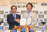 2012-2013시즌 KBL 프로농구 타이틀스폰서는 지난 시즌에 이어 KB국민카드가 됐다. 27일 서울 중구 소공동 웨스틴조선호텔에서 열린 타이틀스폰서 조인식에는 KBL 한선교 총재와 KB국민카드 최기의 사장이 참석했다. 이날 행사를 시작으로 KB국민카드는 대회공식