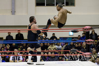 (전남 고흥=고경수 기자) 17일 오후 2시 전남 고흥군 거금도에서 ‘영원한 박치기왕’ 김일 기념체육관 개관식 및 세계프로레슬링 대회가 열린 가운데 프로레슬러 이왕표와 미국의 스코트 노턴이 대결을 펼치고 있다. …