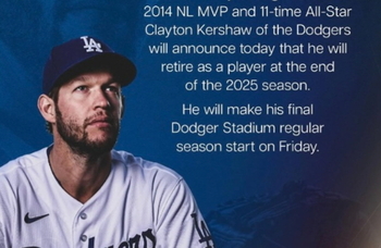 LA 다저스의 살아 있는 전설이자, 한 시대를 풍미한 에이스 클레이튼 커쇼가 정규시즌 마지막으로 마운드에 오른다.연합뉴스 등에 따르면 미국프로야구 메이저리그(MLB) 다저스 구단은 19일(한국시각) "커쇼가 이번 시즌을 마치고 은퇴한다"고 발표했다.커쇼는 20일 미국