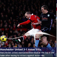 잉글랜드 프리미어리그 맨체스터 유나이티드(이하 맨유)가 웨인 루니의 멀티골에 힘 입어 아스톤빌라를 3-1로 이기고 24경기 무패행진을 이어갔다.맨체스터 유나이티드는 2일(이하 한국시간) 새벽 올드 트래포드에서 열린 2010~2011 EPL 25라운드 아스톤 빌라와 경기