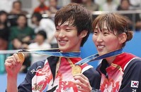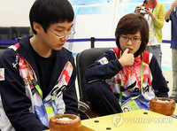 한국 바둑이 아시안게임에서 첫 금메달을 획득했다. 박정환(17)-이슬아(19) 조는 22일 중국 광저우기원에서 벌어진 제16회 아시아게임 바둑 혼성복식 결승에서 중국의 셰허-송룽후이 조와 289수까지 가는 대접전 끝에 흑으로 반집승을 거뒀다. 박-이 조는 계가