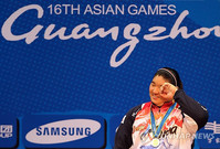 한국이 낳은 세계 여자 역도의 최강자 장미란(27.고양시청)이 2010년 광저우 아시안게임에서 금메달을 목에 걸어 그랜드슬램을 이뤘다.장미란은 19일 중국 광둥성 둥관체육관에서 열린 대회 여자 최중량급(+75㎏급)에서 인상 130㎏, 용상 181㎏, 합계 311㎏을 들