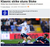 ‘블루 드래곤’ 이청용(22ㆍ볼턴)이 시즌 첫 골을 터뜨리며 팀 승리를 견인했다. 볼턴은 16일(한국시간) 영국 볼턴 리복스타디움에서 열린 2010~2011 잉글랜드 프리미어리그 8라운드 스토크시티와 경기에서 이청용의 선제골과 이반 클라스니치의 쐐기골에 힘입어 2-1로